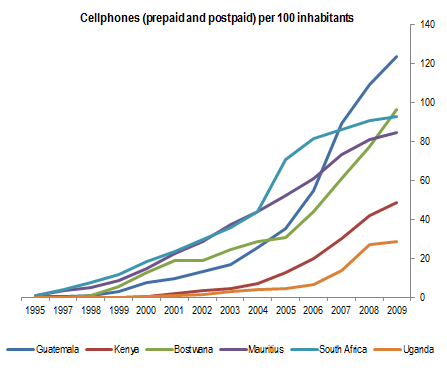 This is strong testimony to the benefits of liberalization of telecomms in Guatemala and that country should be the one to look at for the fullest extent of cellphones in economic growth.