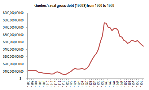 Quebec’s gross debt from 1900 to 1959