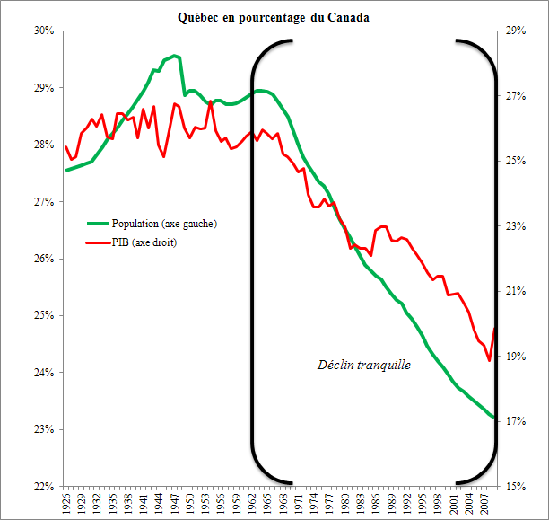 Très intéressant. Une mesure encore plus révélatrice serait l’évolution du PIB/capita québécois en pourcentage de celui du ROC.