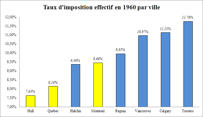 En 1960, les Québécois payaient moins de taxes et impôts qu’ailleurs au Canada. Il n y a que les Montréalais qui en payaient plus que les citoyens d’Halifax.