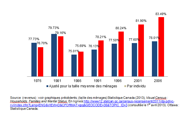 Revenu réel ajusté par personne équivalente et revenu par individu relativement à l’Ontario